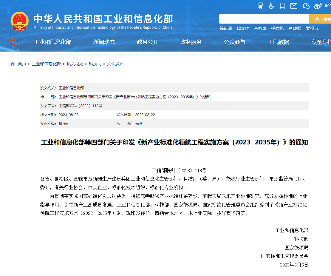 《實(shí)施方案》主要聚焦新興產(chǎn)業(yè)與未來(lái)產(chǎn)業(yè)標(biāo)準(zhǔn)化工作,形成“8+9”的新產(chǎn)業(yè)標(biāo)準(zhǔn)化重點(diǎn)領(lǐng)域。其中,新興產(chǎn)業(yè)聚焦新一代信息技術(shù)、新能源、新材料、高端裝備、新能源汽車(chē)、綠色環(huán)保、民用航空、船舶與海洋工程裝備等八大領(lǐng)域;未來(lái)產(chǎn)業(yè)聚焦元宇宙、腦機(jī)接口、量子信息、人形機(jī)器人、生成式人工智能、生物制造、未來(lái)顯示、未來(lái)網(wǎng)絡(luò)、新型儲(chǔ)能等九大領(lǐng)域。