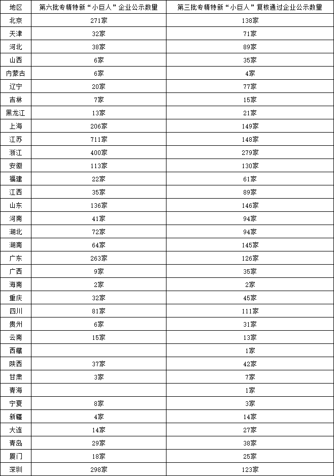 第六批專精特新“小巨人”公示名單分析及未通過原因分析