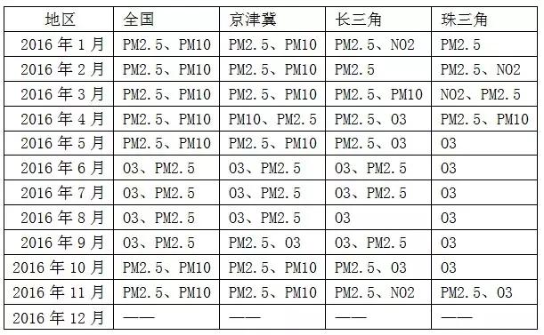 在大氣污染防治工作中,部分區域將治霾和防霾聚焦于PM2.5的監測和管控。事實上,由于我國地域廣闊、四季明顯、各地工業產業差異大,不同地區不同季節的污染存在很大差別,僅監測PM2.5是遠遠不能滿足需要的。以2016年為例,全國、京津冀、長三角、珠三角首要污染物分布見圖1。