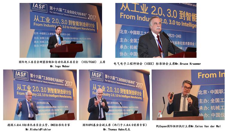 本次會議特別邀請了來自國際電工委員會測量控制和自動化技術(shù)委員會(IEC/TC65)、電氣電子工程師協(xié)會(IEEE)標(biāo)準(zhǔn)協(xié)會、德國工業(yè)4.0標(biāo)準(zhǔn)化委員會、PLCopen國際組織、德國電氣電子和信息技術(shù)委員會(DKE)、OPC基金會等智能制造相關(guān)的國際權(quán)威標(biāo)準(zhǔn)化和研究機(jī)構(gòu)的知名專家做專題報告,與參會者共同分享和探討了智能制造相關(guān)領(lǐng)域的國際技術(shù)動態(tài)和實踐經(jīng)驗。