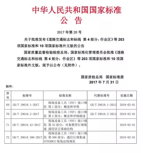 2017年11月15日,國家標(biāo)準(zhǔn)GB/T 29618-2017現(xiàn)場設(shè)備工具(FDT)接口規(guī)范 (6個部分)發(fā)布暨報告會將在北京舉行。本次發(fā)布會將由全國工業(yè)過程測量控制和自動化標(biāo)準(zhǔn)化技術(shù)委員會(SAC/TC124)主辦,機(jī)械工業(yè)儀器儀表綜合技術(shù)經(jīng)濟(jì)研究所(ITEI)承辦,中國儀器儀表行業(yè)協(xié)會,FDT專業(yè)委員會和西南大學(xué)協(xié)辦。