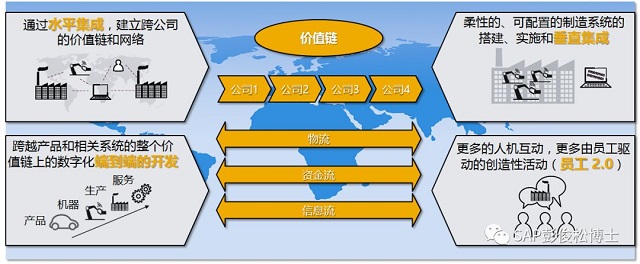 分析到這里,給人的感覺是工業(yè)互聯(lián)網(wǎng)和工業(yè)4.0完全不在一個(gè)層面上,前者提供的是點(diǎn)上的技術(shù),后者是面向整個(gè)企業(yè)的技術(shù)。但實(shí)際上,作為執(zhí)掌全球制造業(yè)牛耳的美國(guó)和德國(guó)這兩個(gè)國(guó)家,在考慮下一代制造業(yè)發(fā)展技術(shù)的時(shí)候,并沒有這么大的不同。我們感受到的差異,更多的是市場(chǎng)包裝側(cè)重點(diǎn)的不同。實(shí)際上,在上圖中通用電氣公司給工業(yè)互聯(lián)網(wǎng)設(shè)定的目標(biāo)里,特別強(qiáng)調(diào)“1%的力量”。這是一種“百尺竿頭,更進(jìn)一步”的提升。如果能將這“1%”應(yīng)用到整個(gè)行業(yè),會(huì)帶來可觀的收益。盡管“1%”看似很小,但工業(yè)互聯(lián)網(wǎng)所實(shí)現(xiàn)的這“1%”,是通用電氣窮盡了各種管理手段和技術(shù)手段之后的創(chuàng)新之舉,需要有很多的前提條件和支撐,而絕不是一個(gè)接上電纜、打開水龍頭就可以用的入門級(jí)技術(shù)。在這“1%”背后,與工業(yè)4.0一樣,同樣需要企業(yè)實(shí)現(xiàn)垂直集成、水平集成和產(chǎn)品全生命周期的端到端集成。打個(gè)比方,工業(yè)4.0是“百尺竿頭”,而“工業(yè)互聯(lián)網(wǎng)”就是那“更進(jìn)一步”。