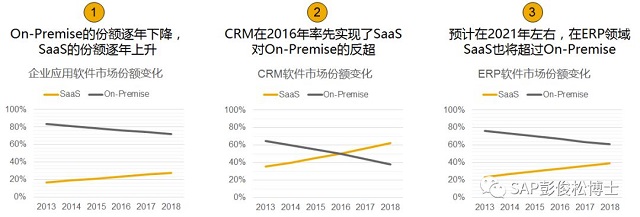 圖:企業(yè)應(yīng)用軟件市場(chǎng)的On-Premise向SaaS的遷移趨勢(shì)