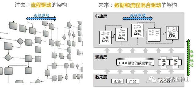 在云大物移等數(shù)字化技術(shù)的推動(dòng)下,企業(yè)的應(yīng)用架構(gòu)正在發(fā)生一場(chǎng)深刻的改變,其特點(diǎn)是從過去傳統(tǒng)的“流程驅(qū)動(dòng)”向新一代的“數(shù)字和流程混合驅(qū)動(dòng)”的變革。工業(yè)互聯(lián)網(wǎng)和工業(yè)4.0,是推動(dòng)企業(yè)向數(shù)字驅(qū)動(dòng)轉(zhuǎn)變的重要力量,通過與流程驅(qū)動(dòng)緊密結(jié)合,完成了新的價(jià)值閉環(huán)。這一新的架構(gòu),涵蓋了來自各個(gè)方面,包括工業(yè)互聯(lián)網(wǎng)和工業(yè)4.0的各方面的應(yīng)用場(chǎng)景的要求,具有旺盛的生命力。