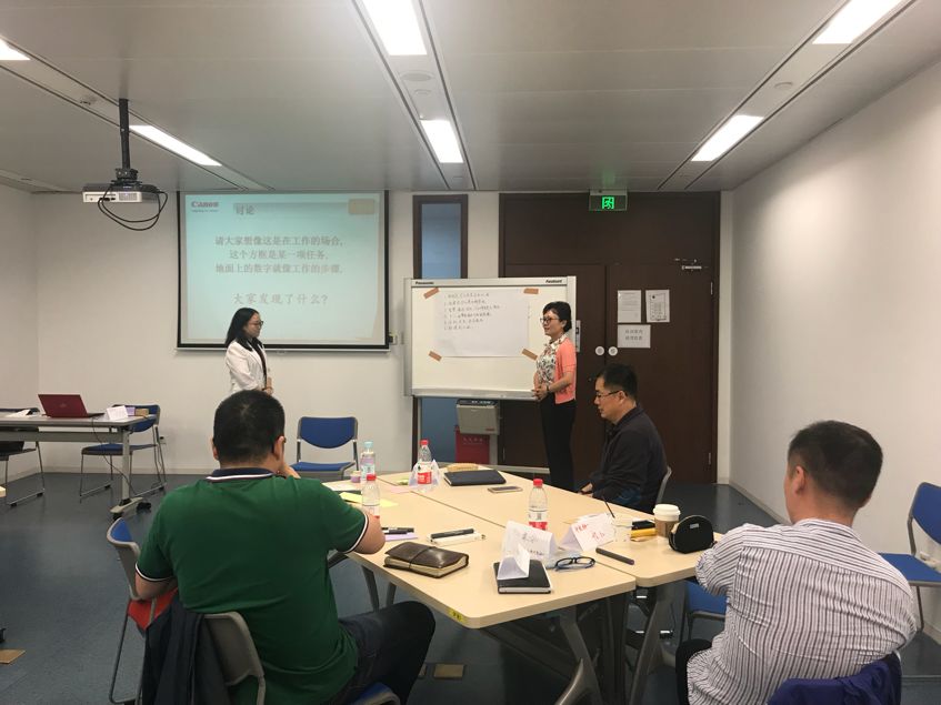 第二次課程在輕松熱烈的氛圍中開(kāi)始,佳能高級(jí)講師首先簡(jiǎn)單回顧了第一次課程的要點(diǎn),之后采取輕松愉快的“星座”分組模式,帶領(lǐng)學(xué)員逐個(gè)分享與實(shí)際工作相結(jié)合的“全體像分析”及“APS流程細(xì)化”作業(yè);在學(xué)員分享過(guò)程中,積極帶動(dòng)各小組成員共同分析和探討,分析所授“手法”掌握的程度及問(wèn)題,總結(jié)其中優(yōu)秀的做法,探討問(wèn)題的其他解決方案;通過(guò)分享及參與的方法再次引導(dǎo)大家理解和鞏固目標(biāo)管理的三要素、3M原則及全體像的應(yīng)用方法等手法。