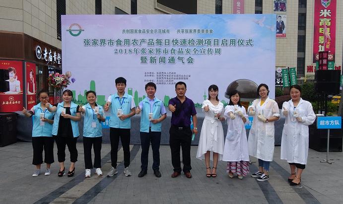 7月5日上午,張家界市人民政府副市長、市食安委副主任鄒菊芳在市食安委于永定區中商廣場舉辦的“張家界市食用農產品每日快速檢測項目啟用儀式暨新聞通氣會”上宣布張家界市食用農產品安全每日快速檢測項目正式啟用,永定、武陵源城區設立的9個快檢實驗室已全面開展快速檢測工作。