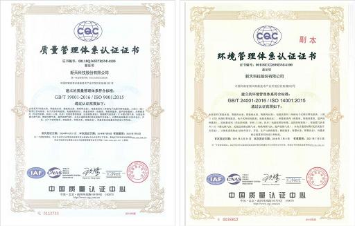 此次,管理體系改版和再認證是新天科技對產品制作流程更高標準的要求,是新天科技長期追求一流產品、一流企業的體現。兩項認證均執行國內外最新管理體系標準,這代表著新天科技將提供更高質量的產品與服務,也表明新天科技在產品質量與環境管理上已經達到行業先進水平。