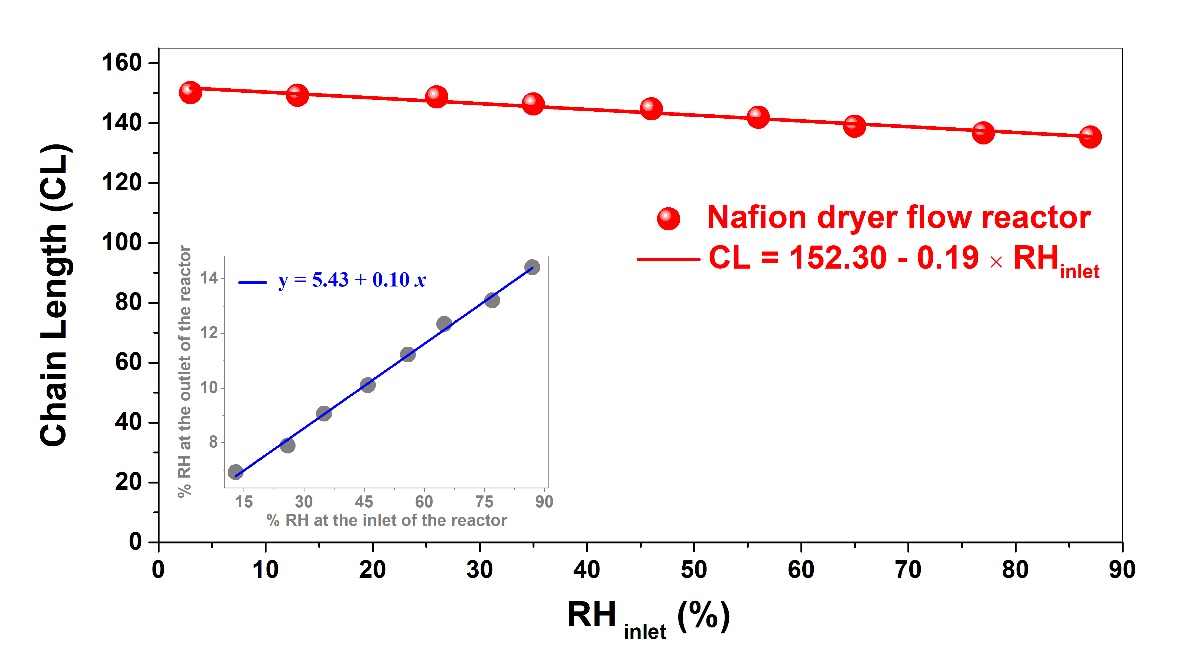 圖1 上圖:基于Nafion管反應(yīng)腔的過(guò)氧自由基進(jìn)樣裝置,下圖:相對(duì)濕度對(duì)化學(xué)鏈長(zhǎng)的影響