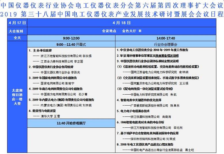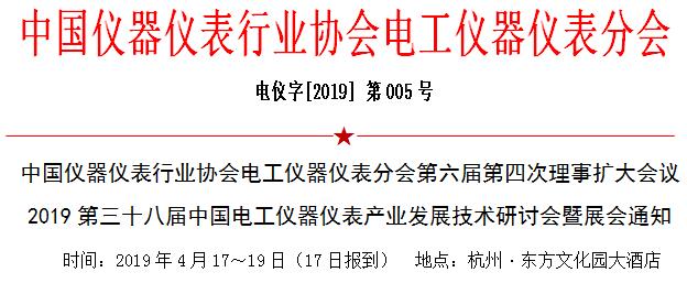 中國(guó)儀器儀表行業(yè)協(xié)會(huì)電工儀器儀表分會(huì)定于 2019 年4月17~19日在杭州東方文化園大酒店召開“2019 第三十八屆中國(guó)電工儀器儀表產(chǎn)業(yè)發(fā)展技術(shù)研討會(huì)暨展會(huì)”,同期召開“中國(guó)儀器儀表行業(yè)協(xié)會(huì)電工儀器儀表分會(huì)第六屆第四次理事擴(kuò)大會(huì)議”、“中國(guó)儀器儀表行業(yè)協(xié)會(huì)團(tuán)體標(biāo)準(zhǔn)系列會(huì)議”。