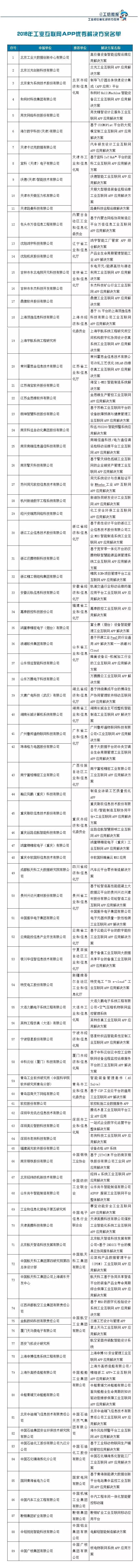 附件:2018年工業(yè)互聯(lián)網(wǎng)APP優(yōu)秀解決方案名單