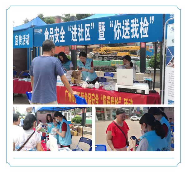 5月14號,為提高廣大消費者的食品安全意識,守護白云區的食品安全環境,廣東中檢達元檢測技術有限公司(簡稱中檢達元)受廣州市白云區市場監督管理局委托,前往白云區大源商業廣場,開展食品安全“進社區”暨“你送我檢”活動,現場免費為群眾快速檢測食品。