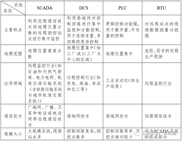 表 2 SCADA、DCS、PLC、RTU 的區(qū)別