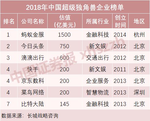 2019年5月,長城戰(zhàn)略咨詢發(fā)布的《2018年中國獨(dú)角獸企業(yè)研究報告》(以下簡稱《報告》)指出,2018年中國獨(dú)角獸數(shù)量首次突破200家,達(dá)到202家,總估值7441億美元,平均估值36.8億美元。