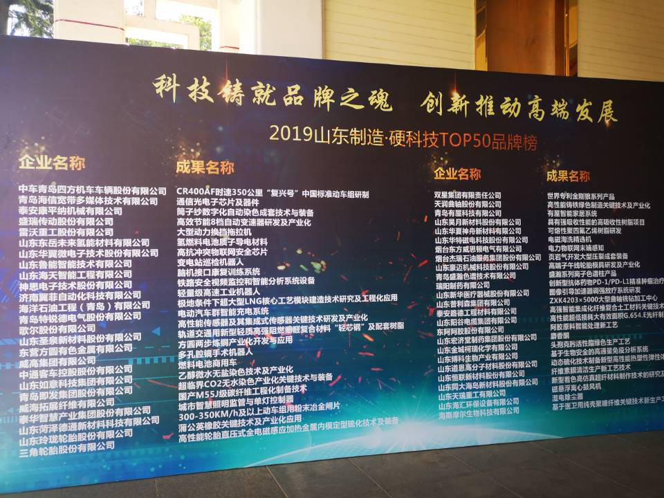 近日,“制造業(yè)高質(zhì)量發(fā)展2019山東論壇暨山東制造·硬科技TOP50品牌榜發(fā)布儀式”在濟南隆重召開,煙臺東方威思頓電氣有限公司“電力物聯(lián)網(wǎng)末端感知”項目上榜。