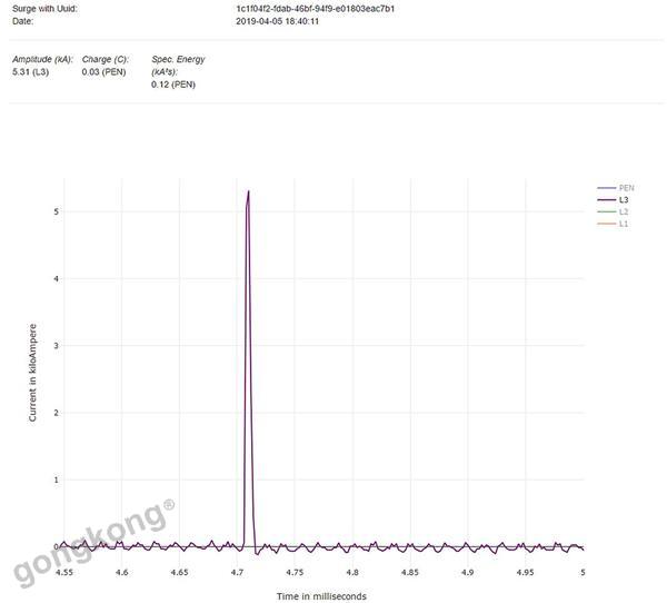 在系統(tǒng)運行過程中,強大的Proficloud云數據處理中心對ImpulseCheck雷電監(jiān)測模塊進行頻譜分析、處理與計算,輕松知曉電涌保護器每個通道的電涌電流大小、電荷量大小、能量大小,電涌保護器模塊工作狀態(tài)一目了然。