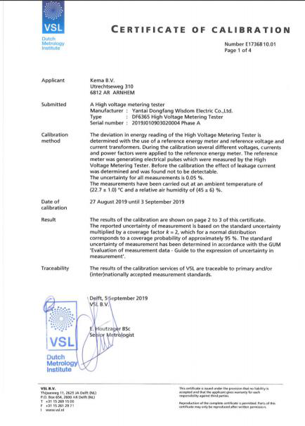 校準由荷蘭計量院高級計量師Ernest主持,兩周時間內(nèi),在不同電壓、電流、相角和頻率等測試條件下,分別測試了高壓檢定裝置準確度。在四次測試驗證中,威思頓設(shè)備均保持了極高的準確度,獲得了荷蘭計量院的高度認可。