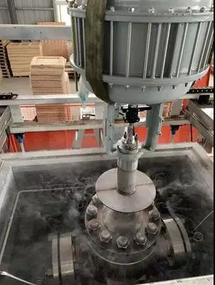 2019年10月14日,在江蘇LNG業主與寰球工程公司代表的見證下,由重慶川儀調節閥有限公司設計制造的國內首臺LNG高磅級低溫調節閥,一次性完成低溫全性能實驗,順利通過項目驗收。閥門一次性通過了-196°C超低溫測試與低泄漏實驗,順利地完成了交付。