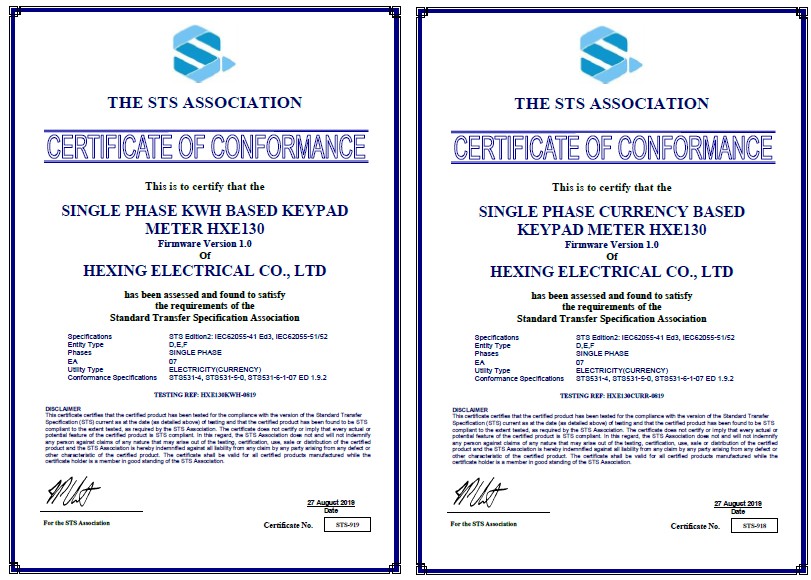 近日,海興預(yù)付費(fèi)表計(jì)成功通過(guò)STS認(rèn)證測(cè)試取得STS2.0證書,這標(biāo)志著海興是全球首家通過(guò)STS2.0完整和穩(wěn)定一致性測(cè)試配套規(guī)范標(biāo)準(zhǔn)(STS531 1.9.2系列)的廠家。海興做為STS協(xié)會(huì)的投票會(huì)員,參與第2版STS規(guī)范的討論與修訂,緊跟協(xié)會(huì)的步伐全面提升預(yù)付費(fèi)表計(jì)的解決方案,夯實(shí)了海興在國(guó)際預(yù)付費(fèi)表計(jì)的領(lǐng)先技術(shù)地位。