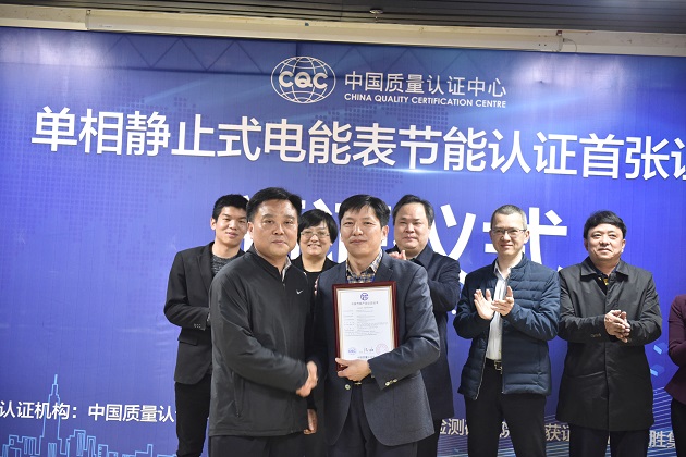 獲頒國內首張單相靜止式電能表節(jié)能認證證書