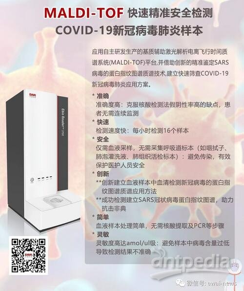 2020年2月25日,北京東西分析儀器有限公司自主研發(fā)生產(chǎn)的 Ebio ReaderTM3700 全自動飛行時(shí)間質(zhì)譜系統(tǒng) (MALDI-TOF)入選中國醫(yī)學(xué)裝備協(xié)會推薦的《新冠肺炎疫情防治急需醫(yī)學(xué)裝備目錄(第三批)》。