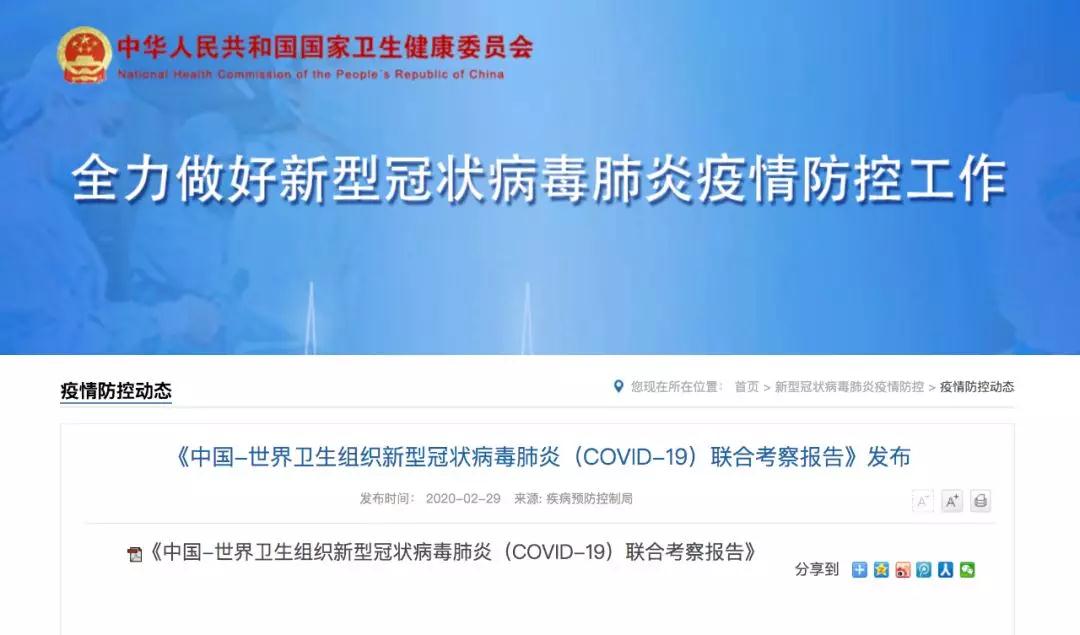 29日,國家衛健委發布《中國-世界衛生組織新型冠狀病毒肺炎(COVID-19)聯合考察報告》,公布了對新冠肺炎的最新研究結果與應對措施。報告指出,中國采取了歷史上最勇敢、最靈活、最積極的防控措施。