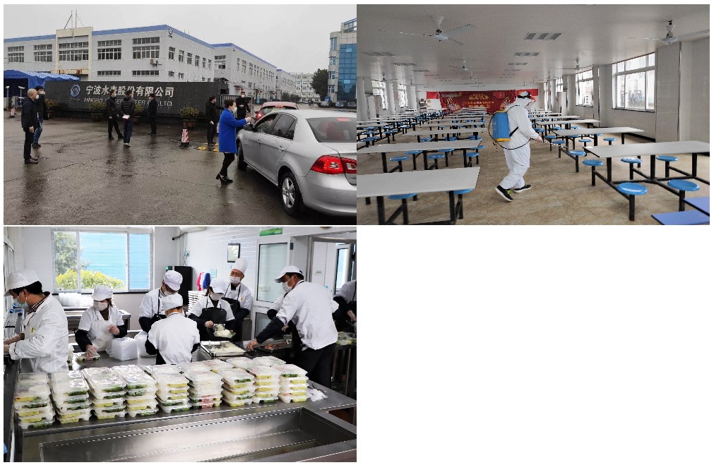 2020年2月11日,寧波水表復工前一天,公司下發(fā)《關于進一步明確復工相關工作安排的通知》,對復工員工健康情況再確認、用餐人數(shù)及防疫物資發(fā)放、錯峰上下班及用餐時間安排、復工員工體溫監(jiān)測管控、分餐安排及餐后整理、環(huán)境消殺與布置安排及未到崗員工管理等各方面內容予以進一步明確,同時,下發(fā)《員工疫情防護須知》、《疫情期間后勤管理制度》等管控制度,確保復工后風險可控、復產(chǎn)有序。
