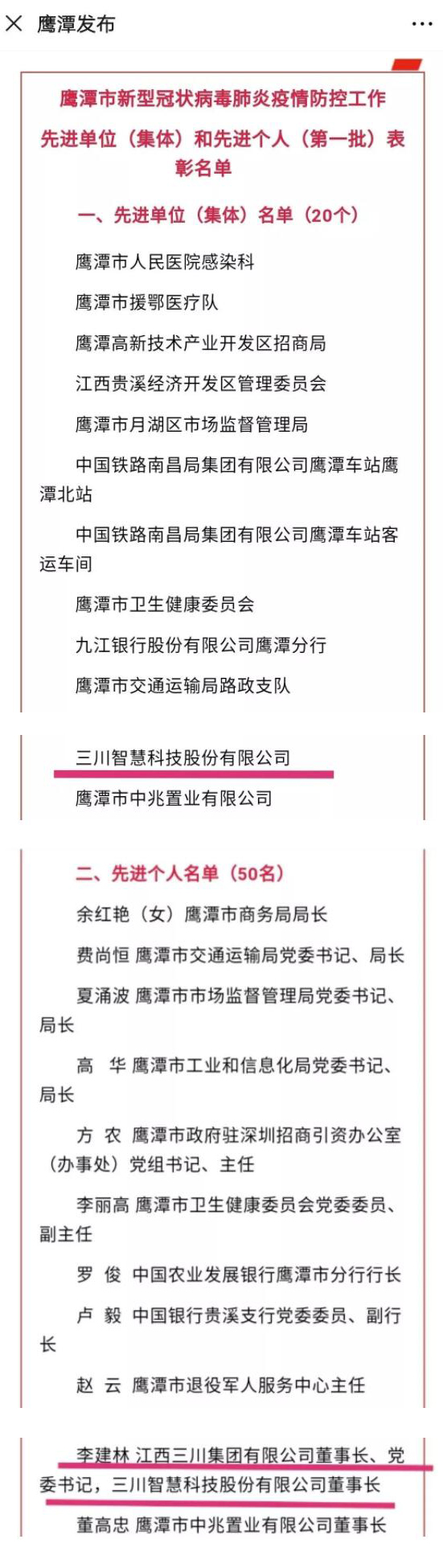 三川智慧榮獲疫情防控工作先進(jìn)單位 三川智慧董事長(zhǎng)榮