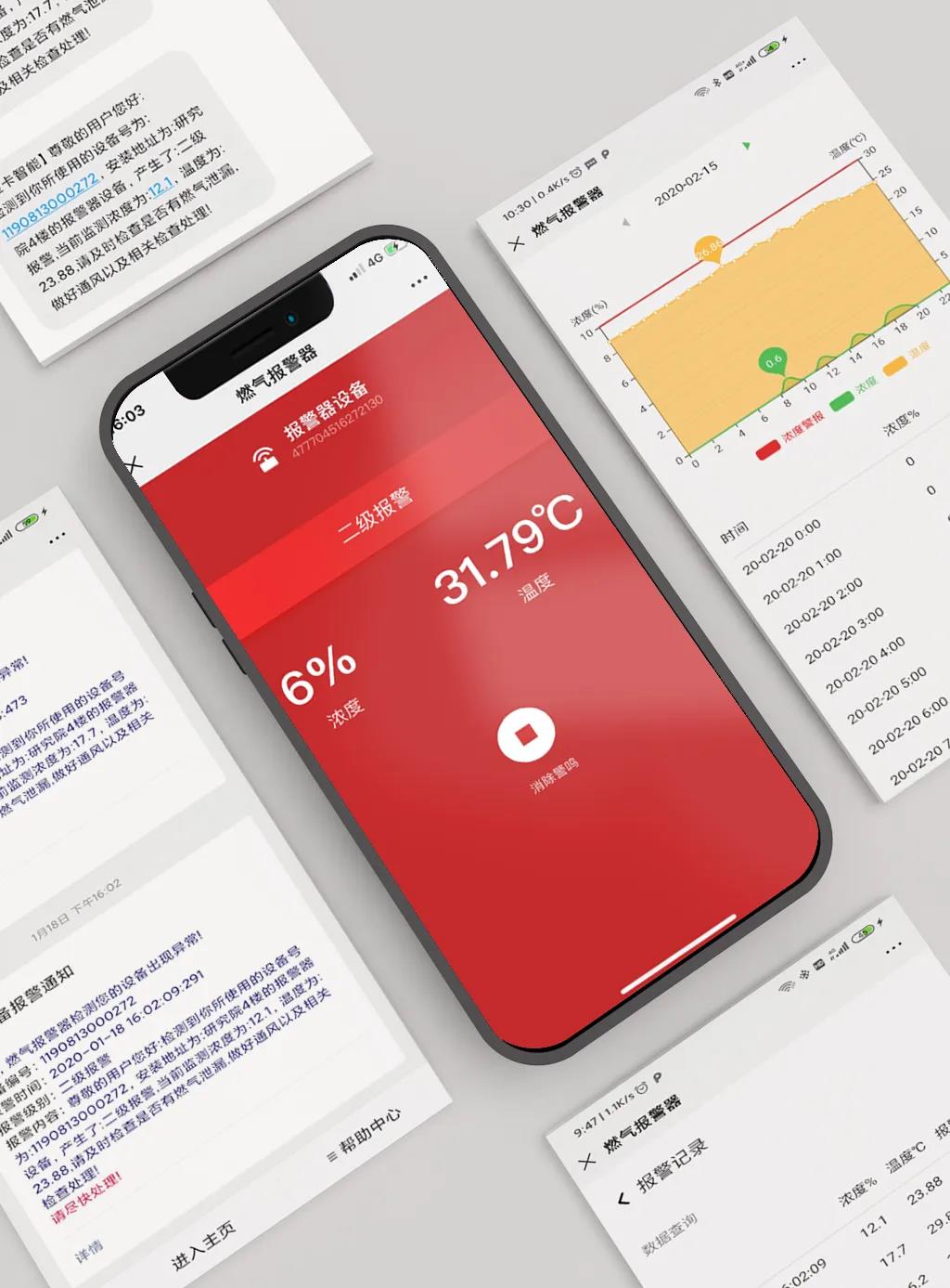 報警器會不間斷地采集當(dāng)前環(huán)境中的氣體濃度數(shù)據(jù),并存儲每個小時內(nèi)的最大值,用戶可以通過微信查詢到設(shè)備的歷史數(shù)據(jù)和報警信息,通過數(shù)據(jù)能夠清晰地勾勒出家庭的用氣情況,從而能提前發(fā)現(xiàn)潛在的泄漏風(fēng)險,及時處理,避免醞釀成事故。