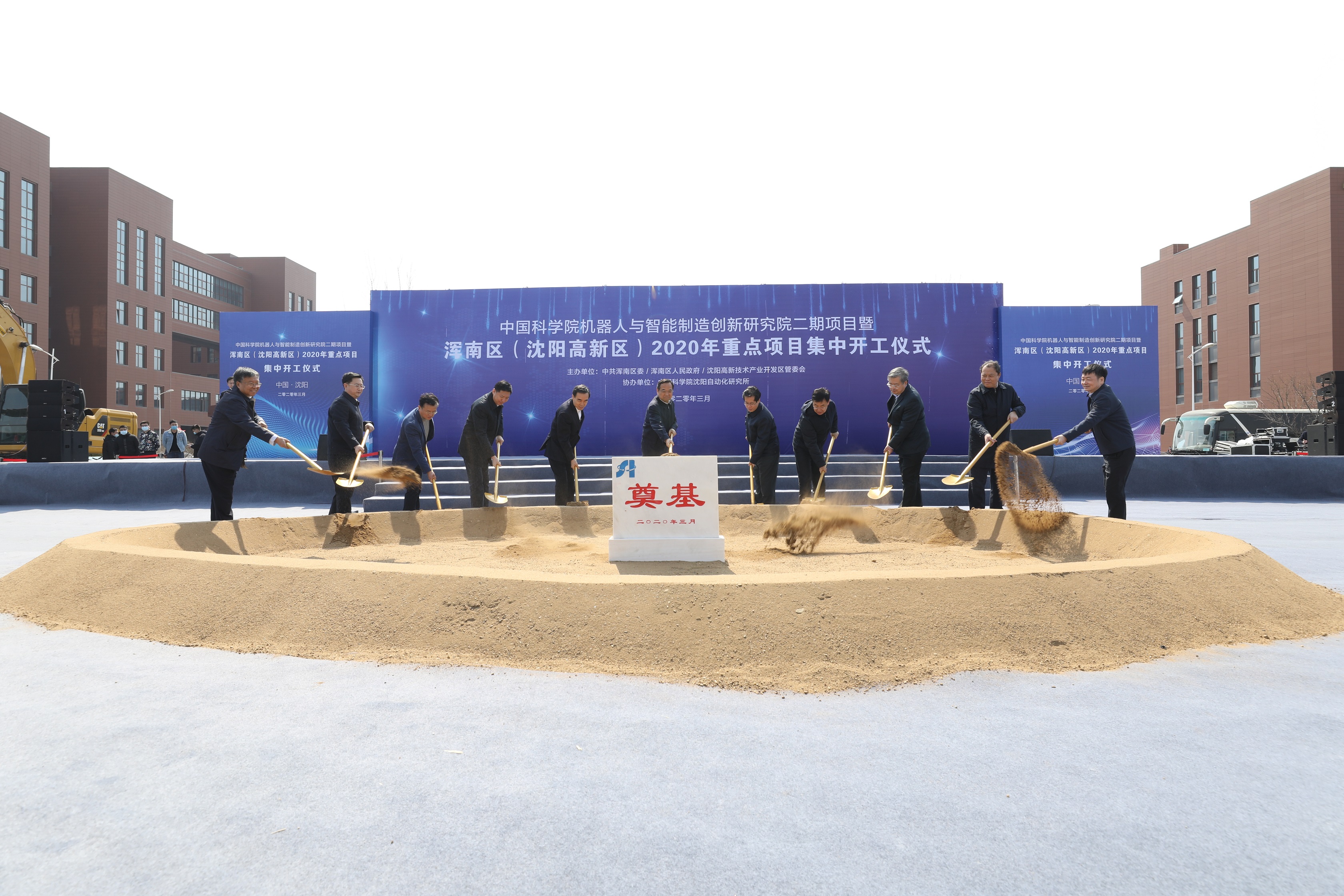 3月30日,渾南區(qū)、沈陽高新區(qū)2020年重點(diǎn)項(xiàng)目集中開工儀式在中國科學(xué)院沈陽自動(dòng)化研究所創(chuàng)新路所區(qū)新開項(xiàng)目現(xiàn)場舉行。遼寧省委常委、沈陽市委書記張雷,市委副書記、市長姜有為,市委常委、副市長李松林,市委常委、市委秘書長李強(qiáng),市政府副市長王忠昆,市政府秘書長曹鵬,渾南區(qū)委書記、沈陽高新區(qū)黨工委書記單義,渾南區(qū)政府區(qū)長、沈陽高新區(qū)管委會(huì)主任閆占峰出席活動(dòng)。沈陽自動(dòng)化所所長于海斌、黨委書記兼副所長桑子剛出席并與主席臺(tái)領(lǐng)導(dǎo)共同為項(xiàng)目奠基。