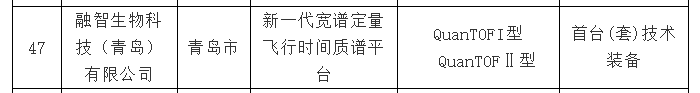 近日,山東省工信廳對2020年度山東省首臺(套)技術裝備和關鍵核心零部件及生產企業名單進行公示,融智生物憑借QuanTOF新一代寬譜定量飛行時間質譜平臺成功入選。