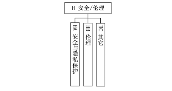 安全/倫理標準包括人工智能領域的安全與隱私保護、 倫理等部分, 如下圖所示。