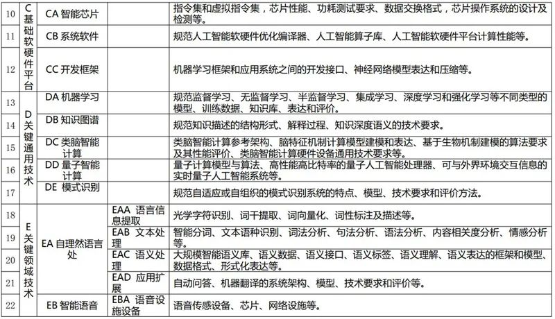 附表:人工智能標準研制方向明細表