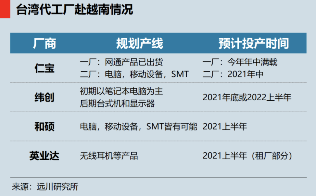 “仁寶”重啟了在北越永福的工廠,網通產品一廠即將滿載,生產PC的二廠也將在明年年中投產。一些心急的企業(yè)甚至等不及買地建廠。比如通信設備廠商“啟碁”則直接租下漢達精密的一間廠房,畢竟再晚一兩個月,美國大客戶可能就保不住了。