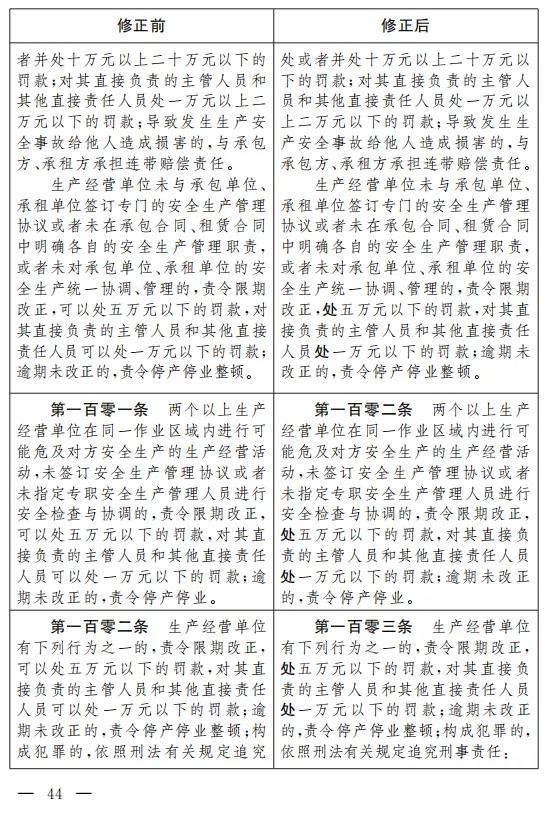 一、將第三條修改為:“安全生產(chǎn)工作應(yīng)當(dāng)堅持中國共產(chǎn)黨的領(lǐng)導(dǎo)。