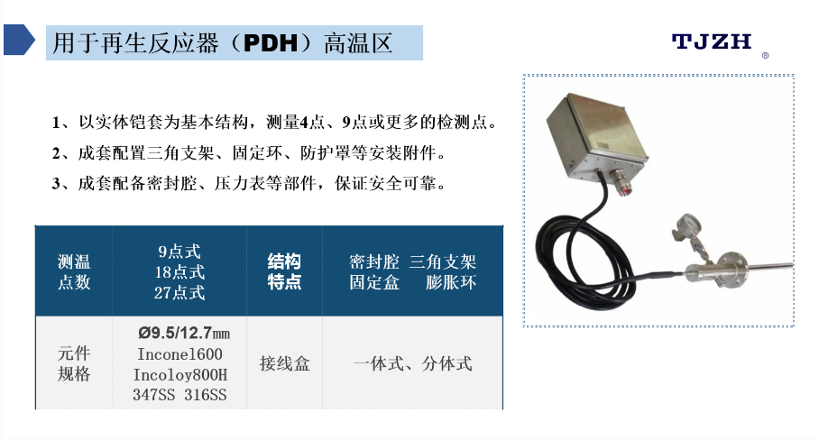 天津市中環溫度儀表有限公司發布的新產品是再生反應器(PDH)高可靠性柔性多點熱電偶。