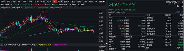 從股價上看,截至7月16日,英特爾股價為54.97美元每股,年內漲幅約為11%。同期,臺積電股價也上漲了11%左右。