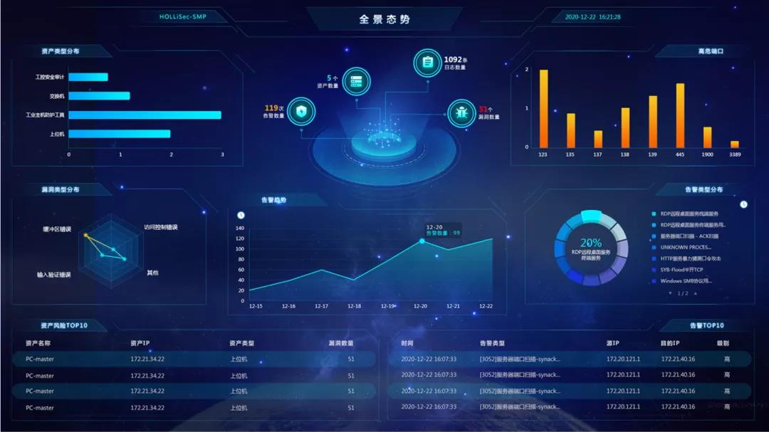 和利時(shí)工業(yè)安全態(tài)勢感知系統(tǒng),可實(shí)現(xiàn)工業(yè)安全設(shè)備和工業(yè)資產(chǎn)集中管控,基于審計(jì)、日志、態(tài)勢、告警和事件等多維度輸入,提供攻擊溯源能力,支持多種異構(gòu)數(shù)據(jù)和協(xié)議的全方位數(shù)據(jù)采集和分析。同時(shí),該系統(tǒng)以全景態(tài)勢可視化呈現(xiàn),多維度展示安全態(tài)勢感知,支持安全、業(yè)務(wù)、告警、時(shí)間的多維度關(guān)聯(lián)安全分析。