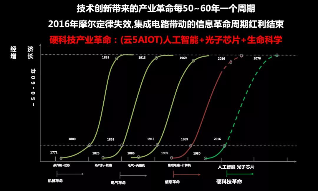 回顧硬科技發展史,我將它分為物質、能量、信息、空間和生命,每一次的工業革命都是物質、能源、信息、空間和生命的革命。