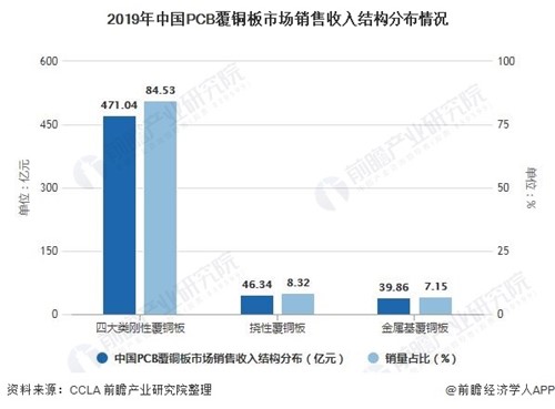 2019年中國PCB覆銅板市場銷售收入結構分布情況
