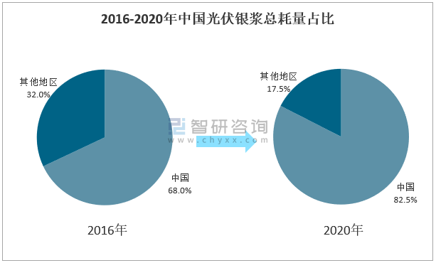 2016-2020年中國(guó)光伏銀漿總耗量占比