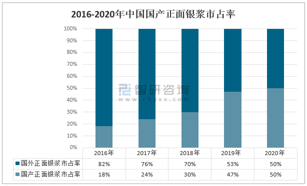 2016-2020年中國(guó)國(guó)產(chǎn)正面銀漿市占率