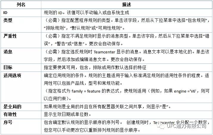 完成配置選項(xiàng)以后,可以根據(jù)不同族和特征之間的關(guān)系定義配置規(guī)則,配置規(guī)則定義在“配置器規(guī)則”中完成,相關(guān)概念的含義如下表所示。只有完成配置規(guī)則定義,各不同的特征才能夠被規(guī)則約束。
