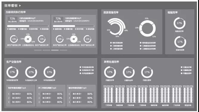 1)關鍵指標匯數據,多類別多層級匯聚車間全要素/全業務/全流程物理與信息融合數據,建立以效率、質量、風險為主要維度的指標體系。