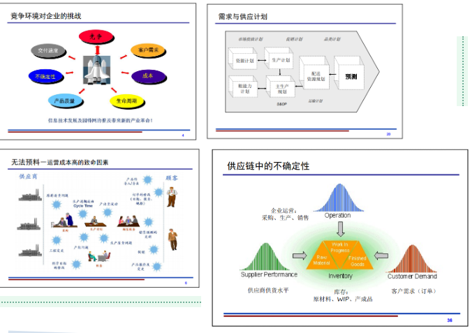 史老師從企業(yè)在經(jīng)營上經(jīng)常遇到的問題入手,分析了運(yùn)營成本高的致命因素,指出供應(yīng)鏈管理的核心問題就是在提供超常的客戶價值上幫助企業(yè)創(chuàng)造競爭優(yōu)勢。在內(nèi)部供應(yīng)鏈部分,史老師犀利的指出,傳統(tǒng)的內(nèi)部供應(yīng)鏈沒有用系統(tǒng)和整體的視角產(chǎn)生總體相關(guān)價值。外部供應(yīng)鏈部分,他指出,從供應(yīng)商到制造商、到配送、到最終用戶,各個環(huán)節(jié)信息的畸變,導(dǎo)致需求的難以預(yù)測,不能讓生產(chǎn)者對庫存、產(chǎn)能等做出準(zhǔn)確的判斷。因此需要一套技術(shù)環(huán)境,來集成“需方”和“供方”的流程,從而減少庫存水平、縮短供應(yīng)鏈周期、降低供應(yīng)鏈成本。史老師在課堂上還分享了戰(zhàn)略尋源管理、供應(yīng)商管理總流程,還向大家展示了通過功能和戰(zhàn)略兩個層面的聯(lián)盟達(dá)到改進(jìn)與客戶伙伴關(guān)系的方法。對于供應(yīng)鏈中的一些不確定性,史老師也從評估風(fēng)險發(fā)生可能性、識別風(fēng)險來源和評估風(fēng)險影響等幾個角度講解,并給出了風(fēng)險管理的策略和應(yīng)對供應(yīng)鏈風(fēng)險的反應(yīng)機(jī)制。最后史老師用典型案例詮釋了什么是最佳的供應(yīng)鏈管理。