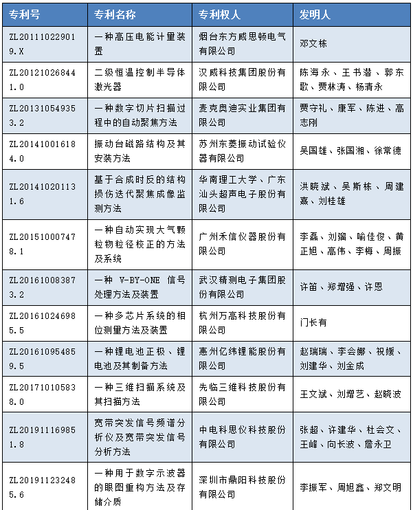 根據(jù)《中國專利獎評獎辦法》規(guī)定,經(jīng)國務院有關(guān)部門知識產(chǎn)權(quán)工作管理機構(gòu)、地方知識產(chǎn)權(quán)局、有關(guān)全國性行業(yè)協(xié)會,以及中國科學院院士和中國工程院院士等推薦,中國專利獎評審委員會評審,社會公示,國家知識產(chǎn)權(quán)局和世界知識產(chǎn)權(quán)組織決定授予“HIV感染的肽衍生物融合抑制劑”等29項發(fā)明、實用新型專利中國專利金獎,“火星車”等10項外觀設計專利中國外觀設計金獎;國家知識產(chǎn)權(quán)局決定授予“填埋氣體和滲濾液傳輸過程的監(jiān)測試驗系統(tǒng)”等60項發(fā)明、實用新型專利中國專利銀獎,“餐飲機器人(普渡)”等15項外觀設計專利中國外觀設計銀獎;國家知識產(chǎn)權(quán)局決定授予“藥品的自動分裝與計量裝置”等777項發(fā)明、實用新型專利中國專利優(yōu)秀獎,“便攜式彩色超聲診斷儀”等45項外觀設計專利中國外觀設計優(yōu)秀獎;國家知識產(chǎn)權(quán)局決定授予廣東省知識產(chǎn)權(quán)局等7家單位中國專利獎最佳組織獎,中國電子儀器行業(yè)協(xié)會等20家單位中國專利獎優(yōu)秀組織獎,高文等20位院士中國專利獎最佳推薦獎。