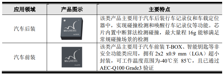 車載應用類MEMS加速度計,主要應用于T-BOX、智能鑰匙等汽車智能交互系統: