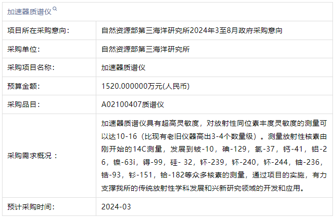 自然資源部第三海洋研究所2024年3至8月政府采購意向-加速器質(zhì)譜儀詳細(xì)情況