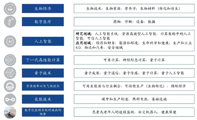 弗勞恩霍夫協會目前的研究領域主要有8項,包括:生物經濟、數字醫療、人工智能、下一代高性能計算、量子技術、資源效率以及氣候技術、氫能技術和數字化監測系統對疾病的預警等。