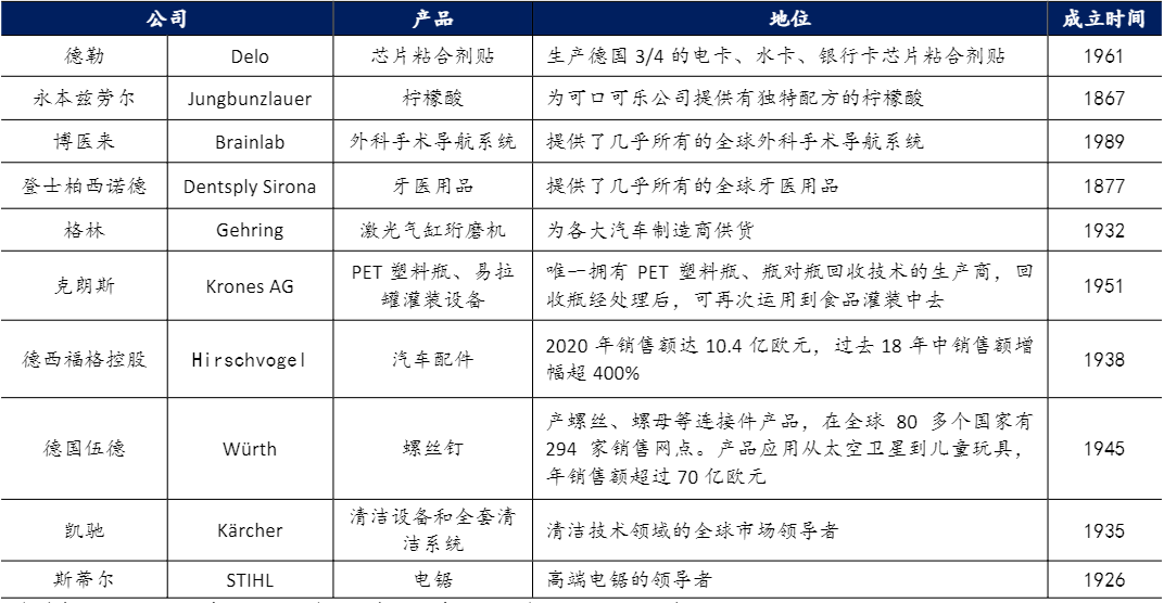表:部分德國中小企業已成為細分領域巨頭或唯一供應商