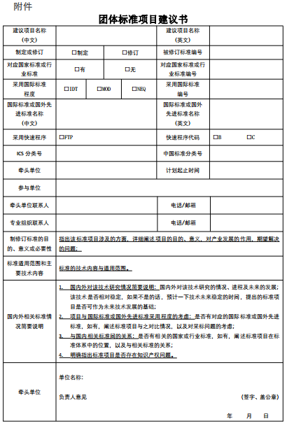 附件:團(tuán)體標(biāo)準(zhǔn)項(xiàng)目建議書(shū)